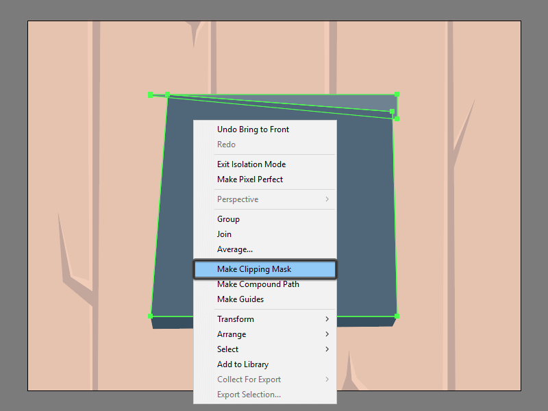 Since we want the shape to remain confined to the surface of the larger underlying shape, we’ll have to mask it using a copy (Control-C) of the lock’s front section which we will paste in front (Control-F) and then with both shapes selected > right click > Make Clipping Mask.